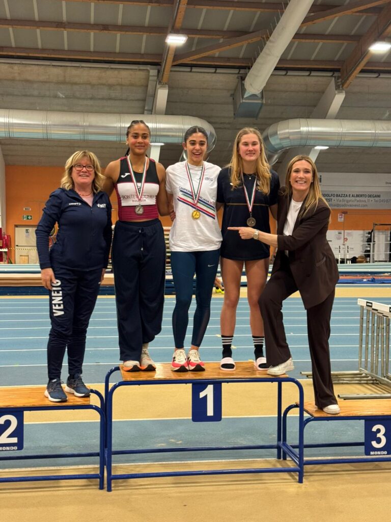 Due settimane dopo i trionfi di Ancona, sono ancora le nostre Promesse e Junior a stupire, questa volta a Padova Sofia Bonafè vince il Titolo italiano Promesse di Pentathlon indoor e Vittoria Grandi è seconda nel Pentathlon juniores. Per Sofia è il quarto Titolo in carriera, il primo indoor, cui aggiunge un secondo e tre terzi, sempre nelle multiple. Inizia bene con il personale di 9″06 nei 60 hs portandosi al sesto posto; regala qualcosa nell’alto superando 1,60; poi nel peso con 10,61 risale al quinto posto. Ma è un super salto in lungo con il nuovo personale di 5,87 a portarla di poco al comando. Chiude con un 800 sempre in testa, vinto in 2’25″22 che le regala il Titolo con 3766 punti, migliorandosi di 70.