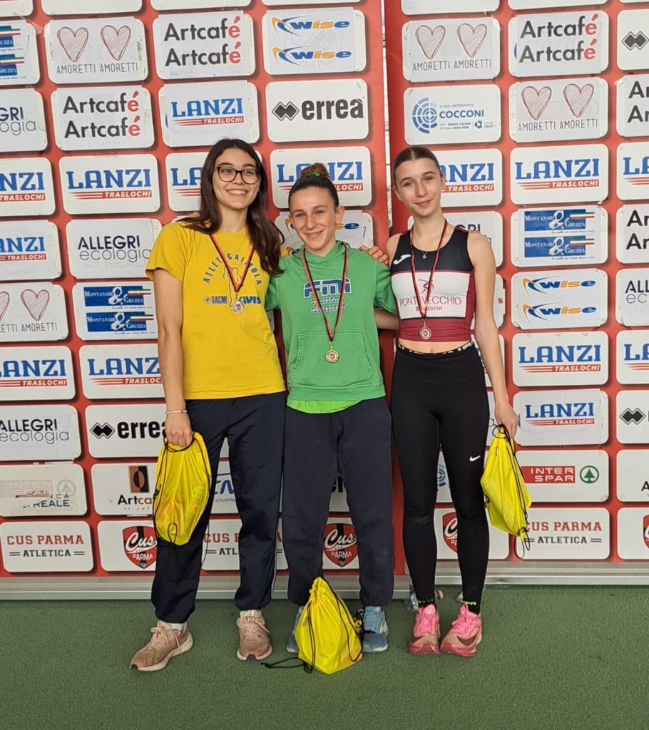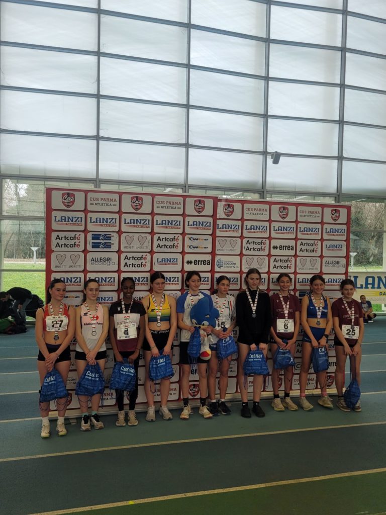 Indoor anche a Parma per Cadetti/e. Doppio argento nell’asta per Veronica Mosca a 2,50 e Alessandro Qatipi a 2,85. Bronzo per Arianna Mundo nei 200 in 27″77 e quarto posto per Fabio Bellagamba nei 60 in 7″80. Il Tetrathlon assegnava anche i Titoli regionali con Safa Ait El Arabi quarta con 2128 punti; Arianna Cirasola ottava e Marta Sandrolini decima. Nei Cadetti Antonio Lacalandra quarto con 2132 punti; Giovanni Sgarzi 11° e Davide Rapparini 14°.