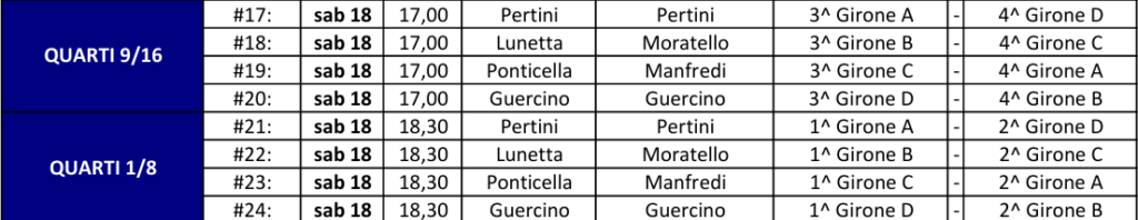 A seguire, la fase ad eliminazione diretta, così organizzata: